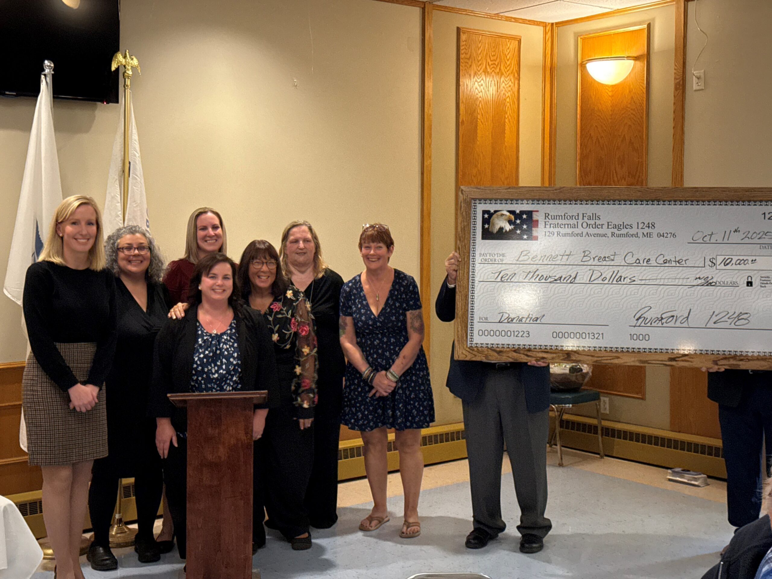 “I would like to thank Dorie for her generous contribution,” said Stephany Jacques, president of Rumford Hospital. “The fight against breast cancer is very personal for her, and that is evident in her tireless efforts to raise these funds. Dorie and the Rumford Eagles are an invaluable part of the River Valley community.”