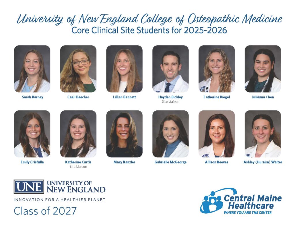 Our residency is a host Core Clerkship site for the entire third year of clinical experiences for the University of New England College of Osteopathic Medicine (UNECOM). We accept a total of twelve students from UNECOM, who are matched to our site through a lottery process.
